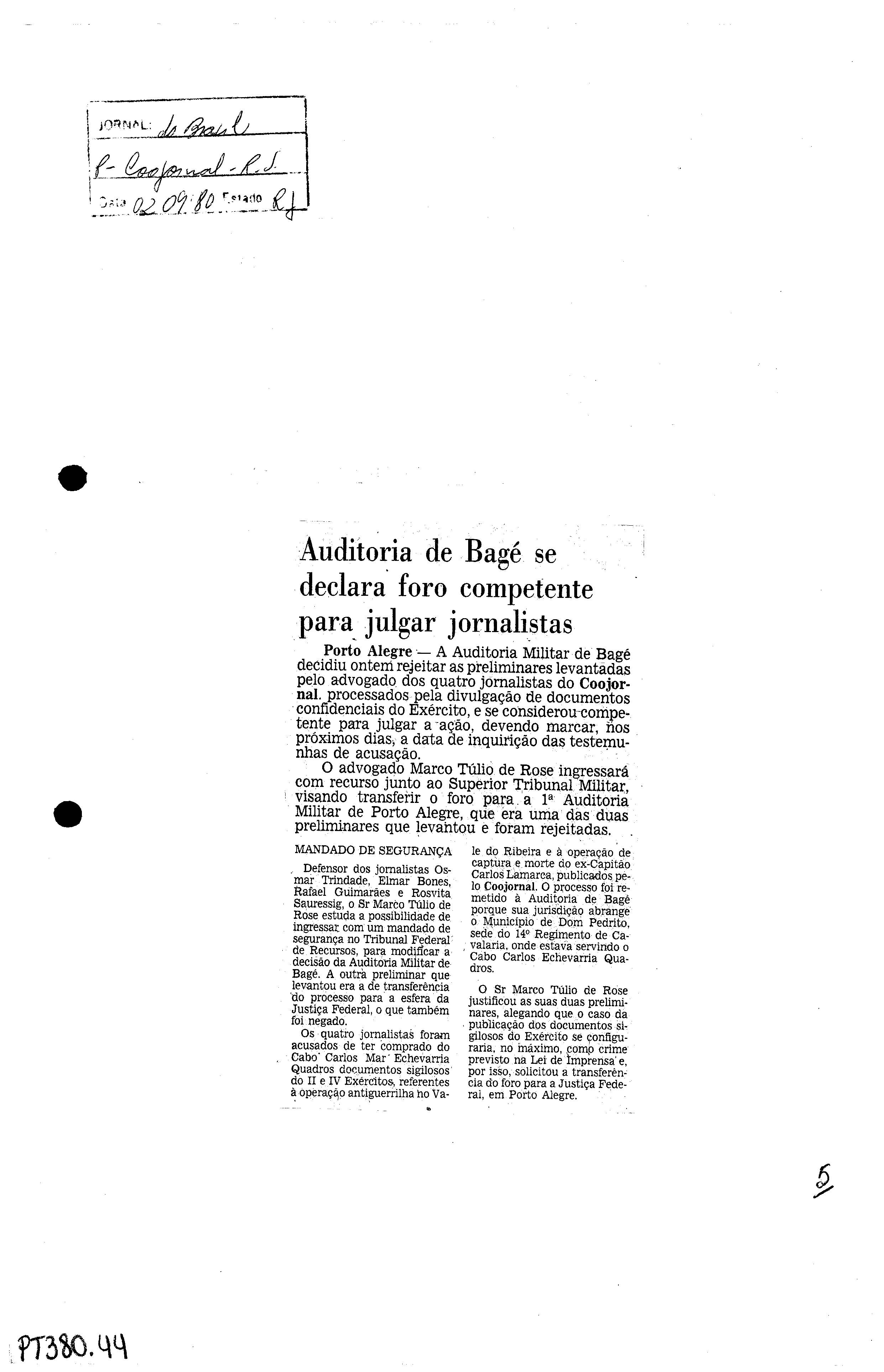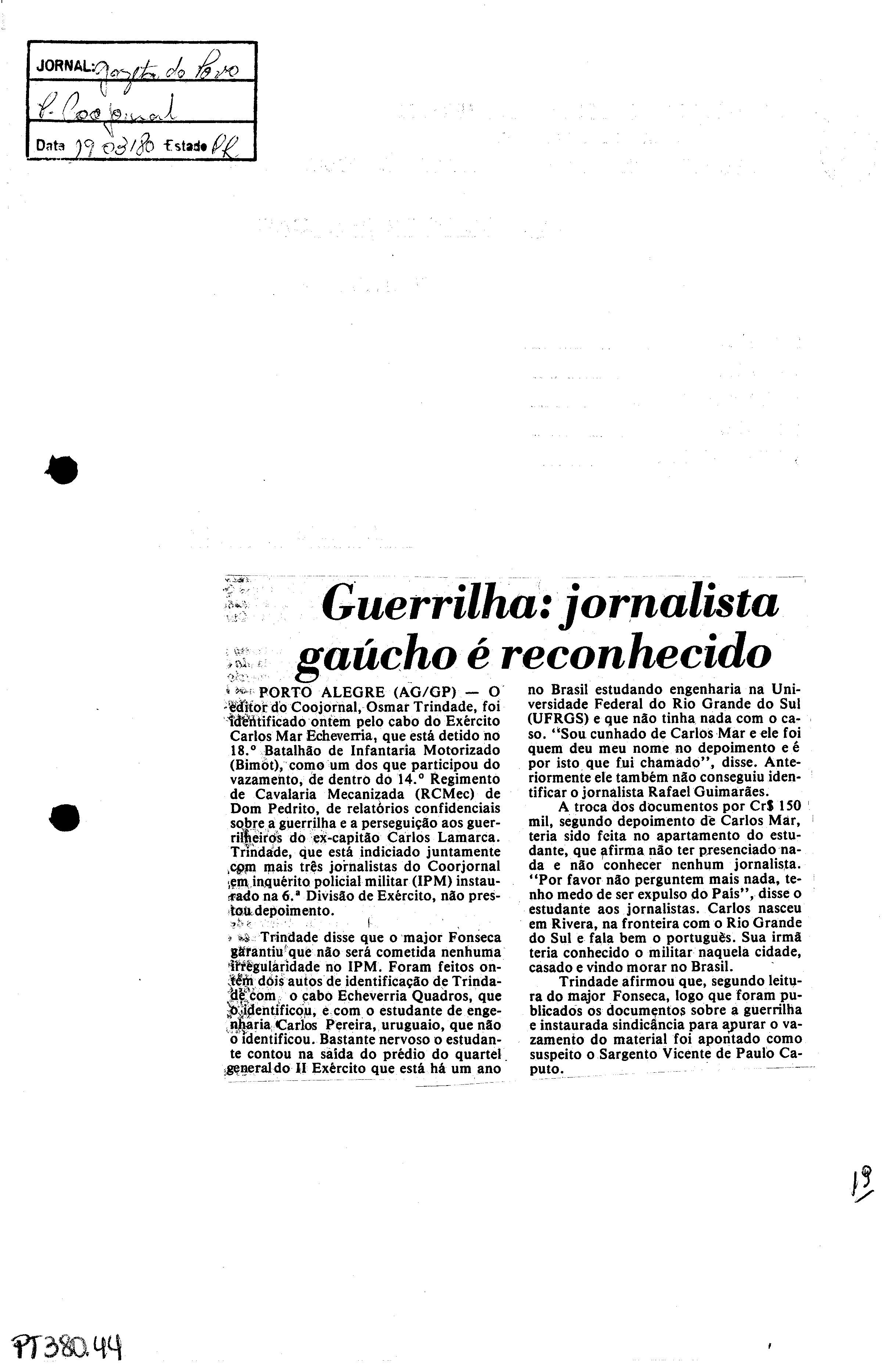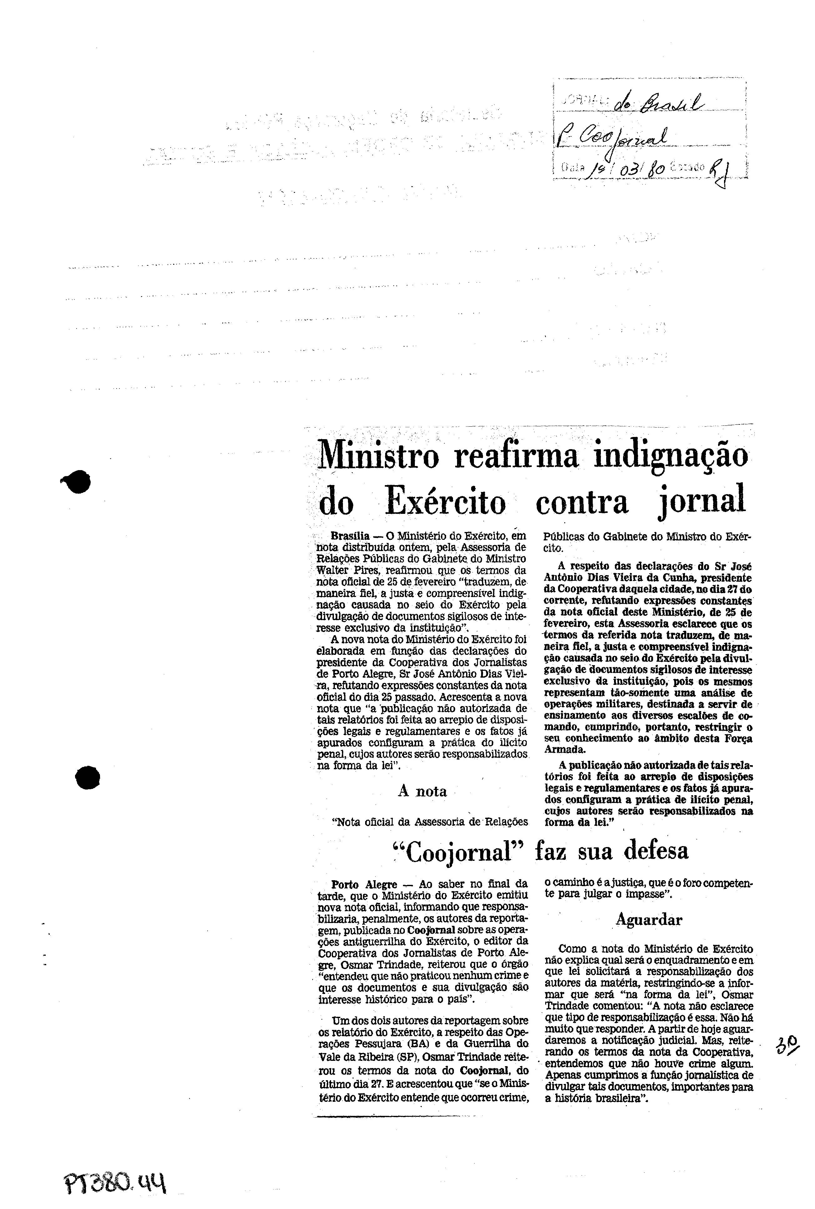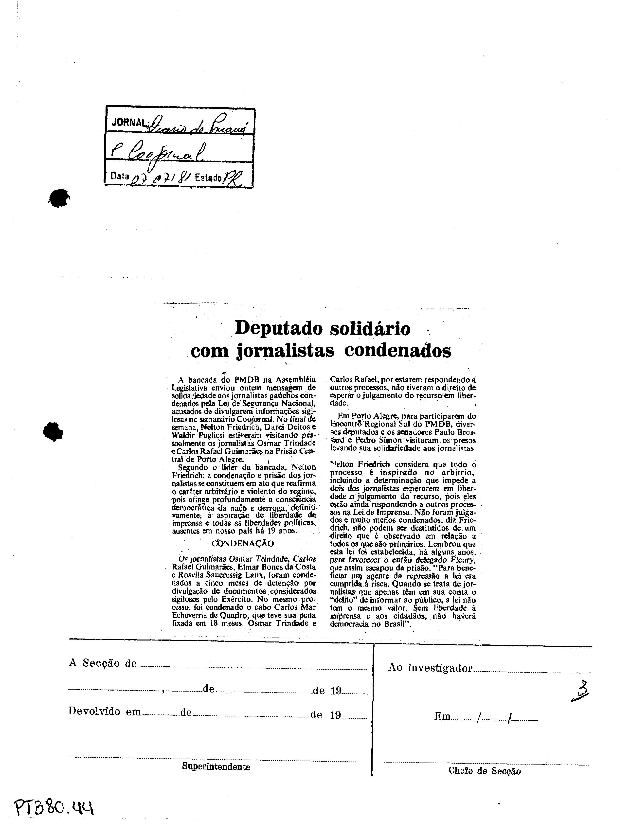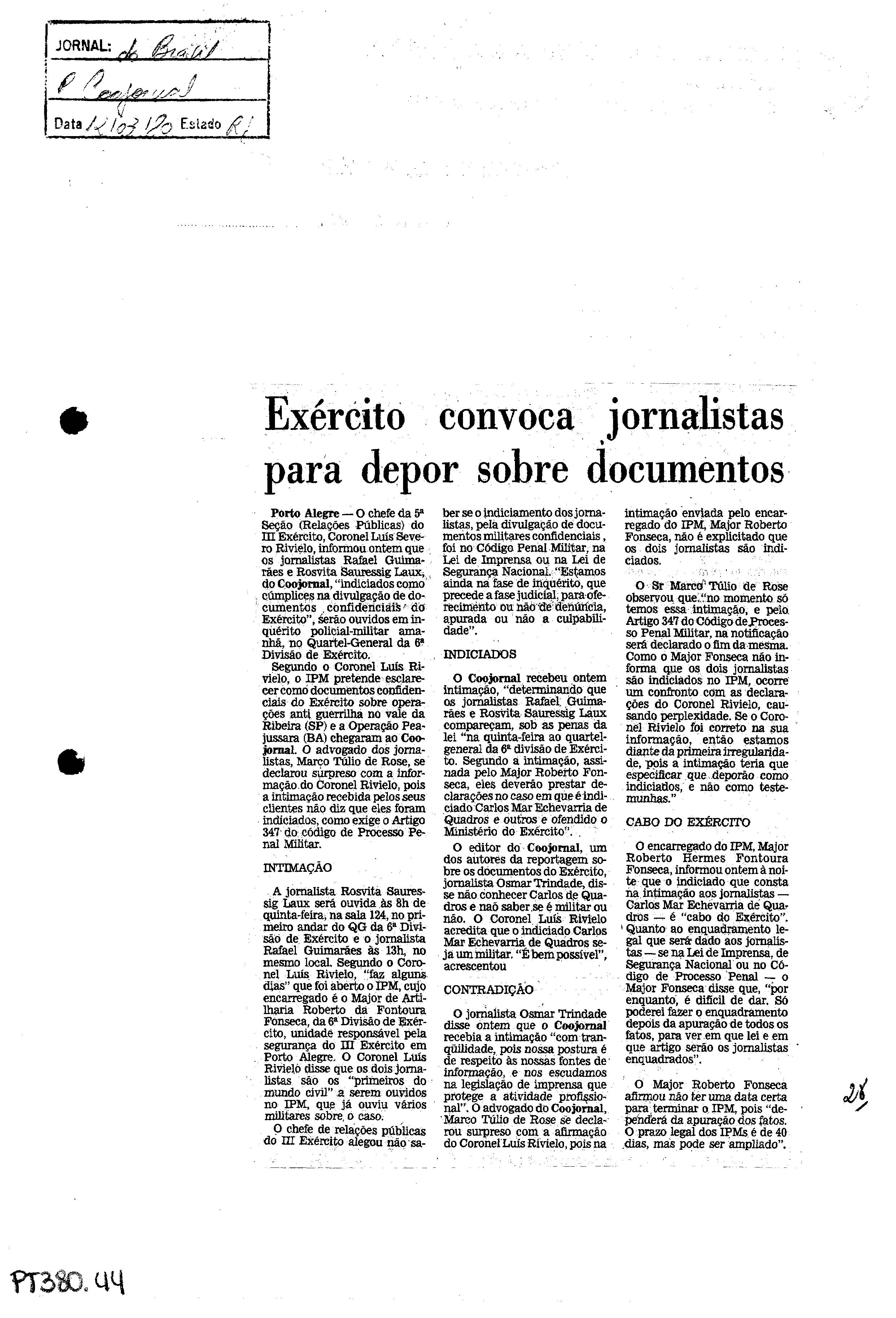 Uma matéria, em 1980, que tratava de documentos secretos do Exército sobre a repressão a movimentos guerrilheiros ocorrida dez anos antes foi a gota d’água,. Rafael Guimarães, Elmar Bones, Rosvita Saueressig e Osmar Trindade acabaram processados pelo Exército e condenados à prisão.