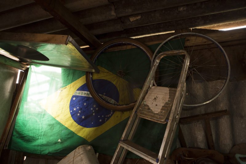 Foz do Iguaçu não é só a cidade das Cataratas do Iguaçu, ela é rodeada por Puerto Iguazú, na Argentina, e Ciudad del Este, no Paraguai. Na tríplice fronteira, é um leva e traz de produtos para abastecer comércios formais e informais do Brasil. Segundo relatos que ouvi por ali, nos últimos dez anos os agentes da Receita Federal intensificaram a fiscalização contra os muambeiros e, assim, muitos moradores se viram em declínio financeiro. Resultado: já não podem arcar com a cesta básica, aluguel, água e luz. Esse é o caso da quase totalidade dos moradores da Ocupação Bubas.