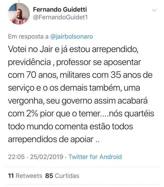 “Você vai acabar pior que o Temer”, diz a Bolsonaro eleitor arrependido
